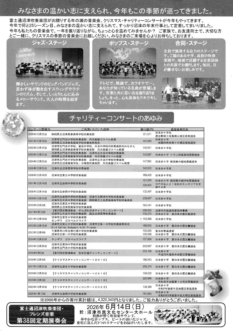 | 後援 | 沼津市教育委員会 静岡県吹奏楽連盟 |